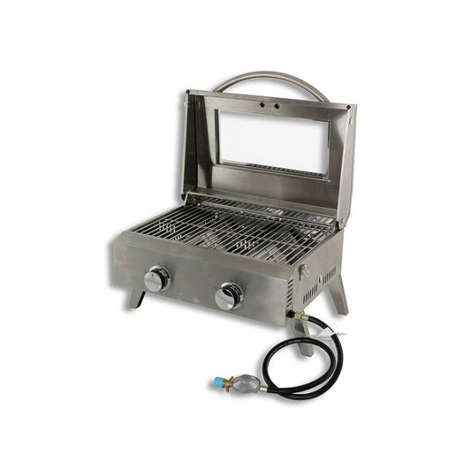 2 Burner Hooded Gas BBQ + Window, Stainless Steel Barbeque - Barbecue Grill