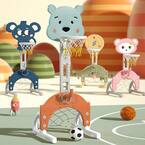 Basketball Hoop Set Blue 3-in-1 Kids Stand with Ring Toss, Basketball and Football