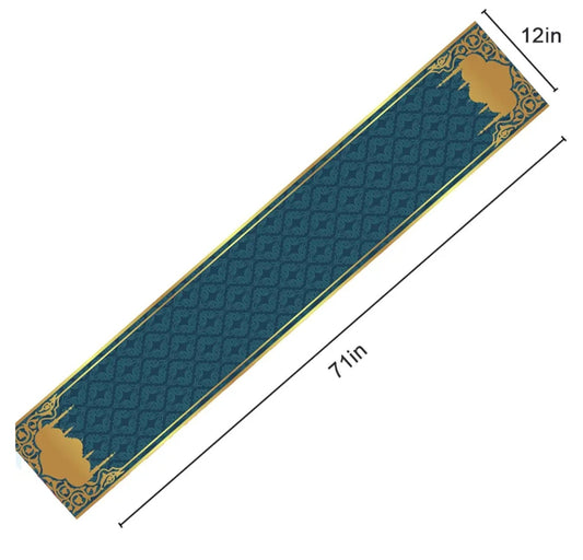 Eid Mubarak Table Runner, Ramadan Table Decorations Blue Gold Mosque Polyester Tablecloth Eid Mubarak Decoration for Home Table Muslim Islamic Holiday Religious Dining Room Ramadan Party Decoration