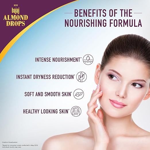 - Instant dryness reduction - Bajaj Almond Drops Nourishing Body Lotion get absorbed into the skin quickyly, instantly reducing dryness