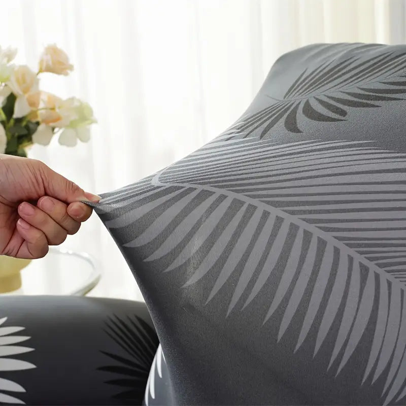 Contemporary 4PC Black and White Leaf Print Recliner Slipcovers, Stretchable Polyester and Spandex Chair Covers, Machine Washable, Elastic-Band Closure, Slipcover-Grip Design for Home Decor and Protection