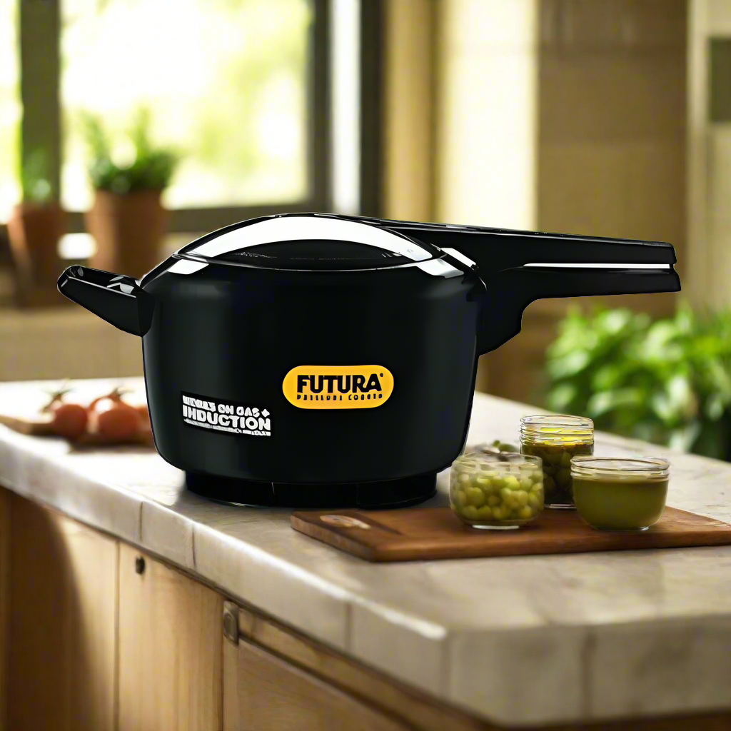 - Hard Anodizing makes the pressure cooker absorb heat faster making it more energy-efficient