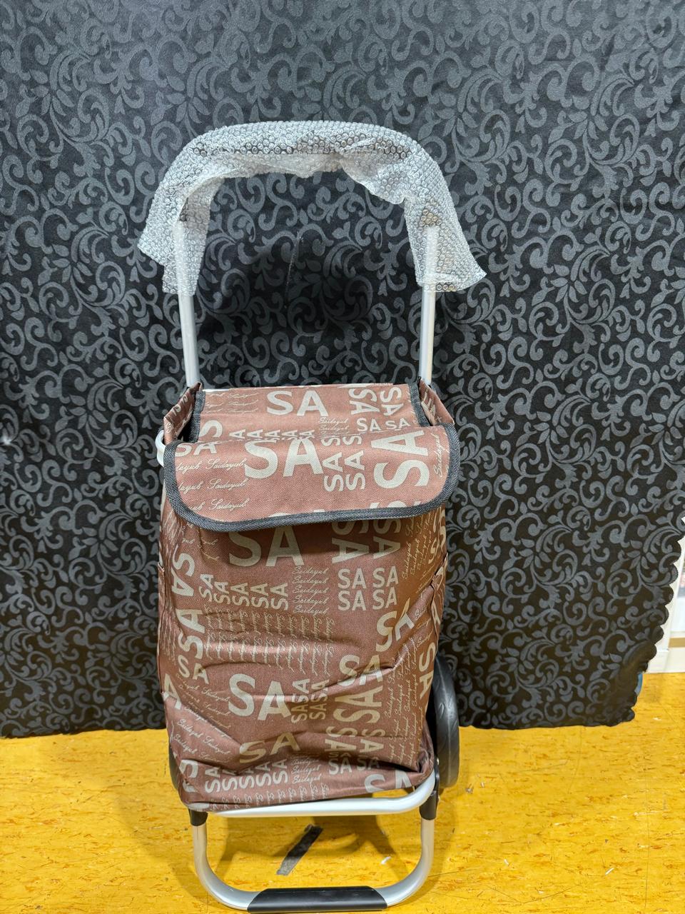 A shopping trolley is a large bag on wheels, used for carrying a large amount of shopping home on foot.
