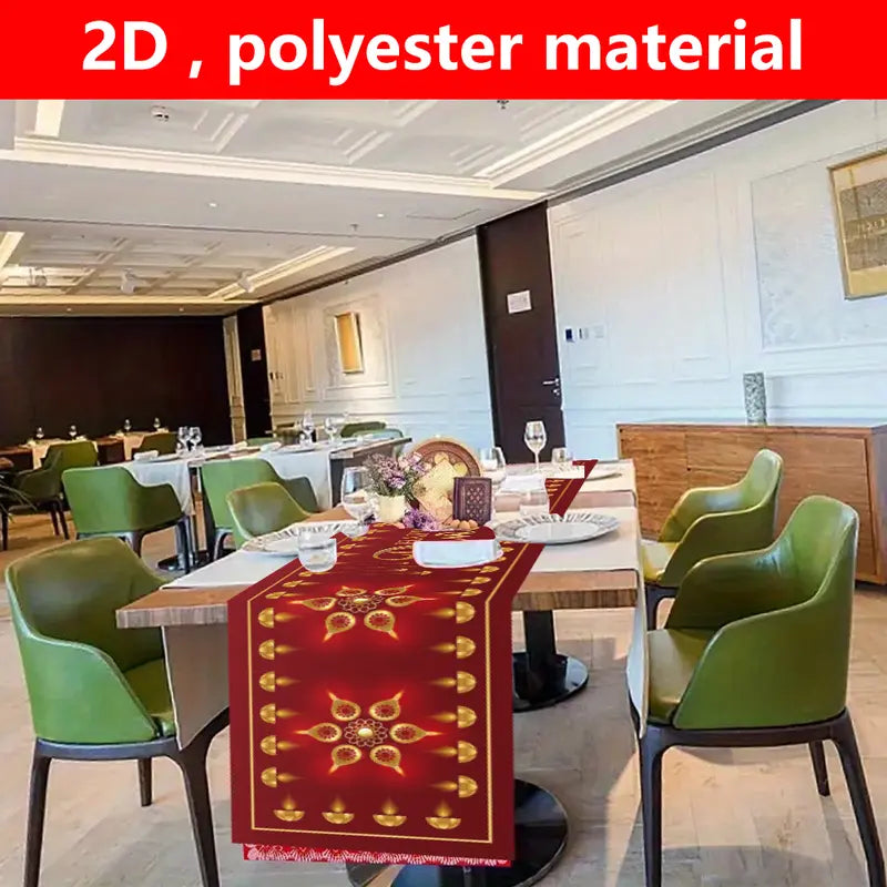 1pc 2D Happy Diwali Festival Tablecloth - 179.83cm x 35.05cm, Vibrant Indian Style Polyester Decor with Golden Diwali Design, Durable & Easy-Clean for Festive Home & Party Celebrations, Festive Table Setting | Indian Style Decor | Durable Polyester
