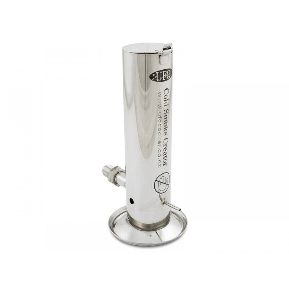 The UFO Cold Smoker produces a stream of cold smoke which is pumped to wherever you choose such as, a smoking box, a wood shed, an old fridge, a barrel, or a hooded BBQ. Ideal for cold smoking all your favourite foods, like cheese, eggs, garlic, bacon, fish or meats.