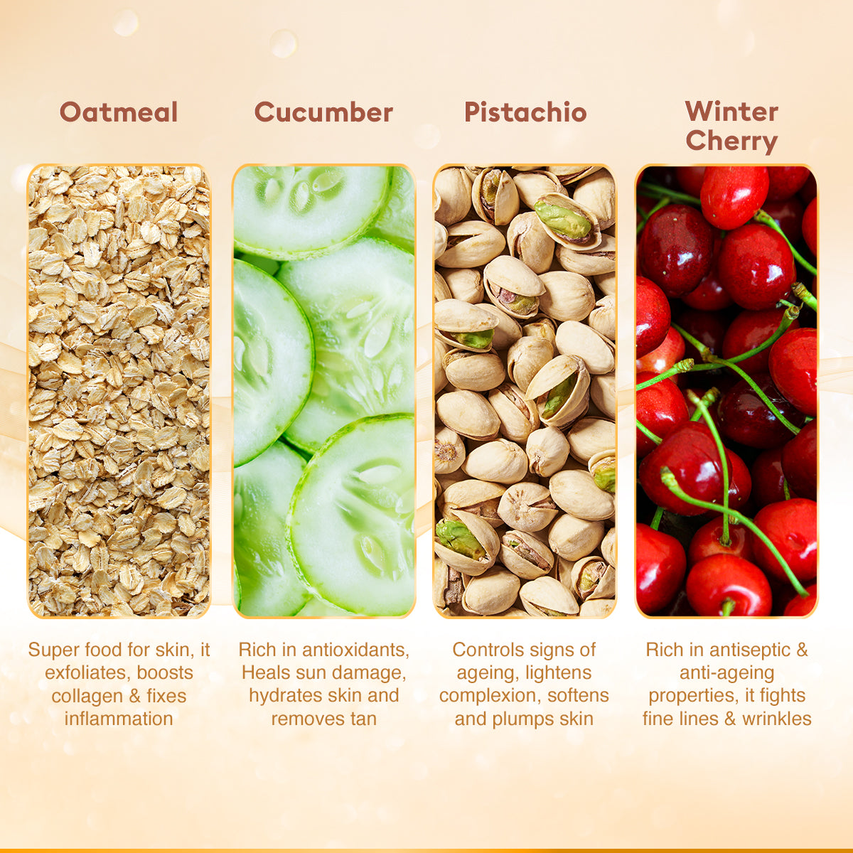 The Anti-Tan Facial Kit offers a perfect respite against summer tan and gets you party-ready, instantly. It helps remove sun tan, dark spots, and sun spots and provides your skin with an even, hydrated look. This Anti Tan Facial Kit is an easy 6-step routine that helps fade sun tan and aids in softening sun-exposed skin. The 6-step routine helps even out patchy skin, replenishes damaged skin, and lightens sun spots and sun tan.